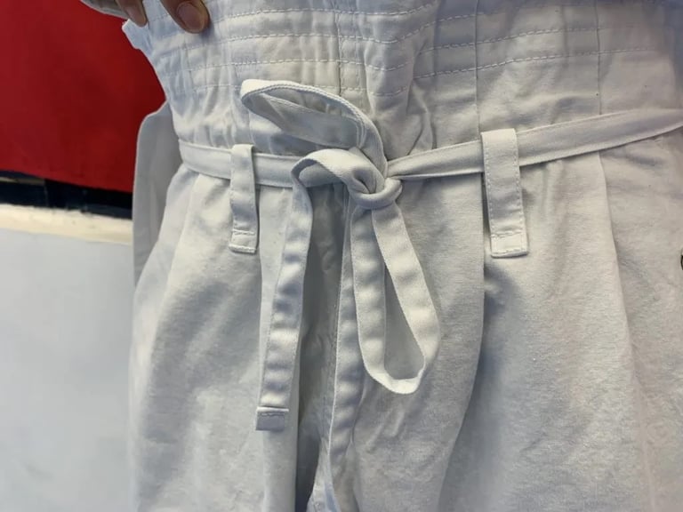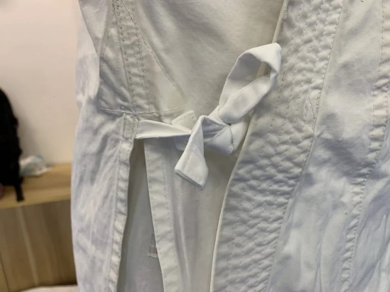 學習空手道,第一件事就是要穿上正確的服飾。上空手道堂時,學員均需穿上空手道道袍,以及繫好自己級數或段數的色帶,這一種標誌性服裝。以下是關於空手道服飾的詳細資料: