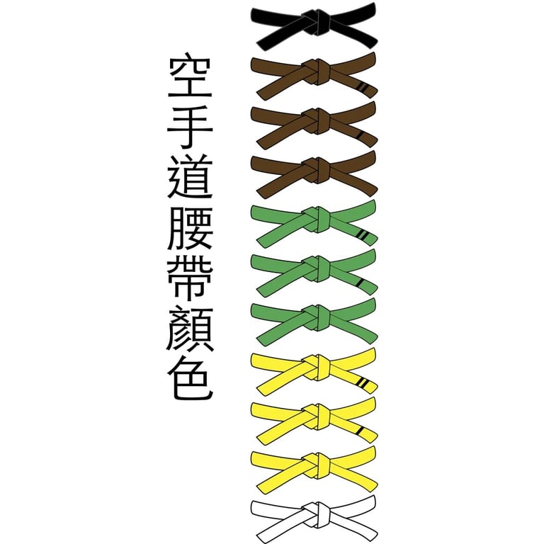 除了道袍重要,色帶也十分重要,這也是道袍服飾中一個不可或缺的要素。空手道以腰帶顏色來表示級數或段數,空手道共有9個級別和10段。